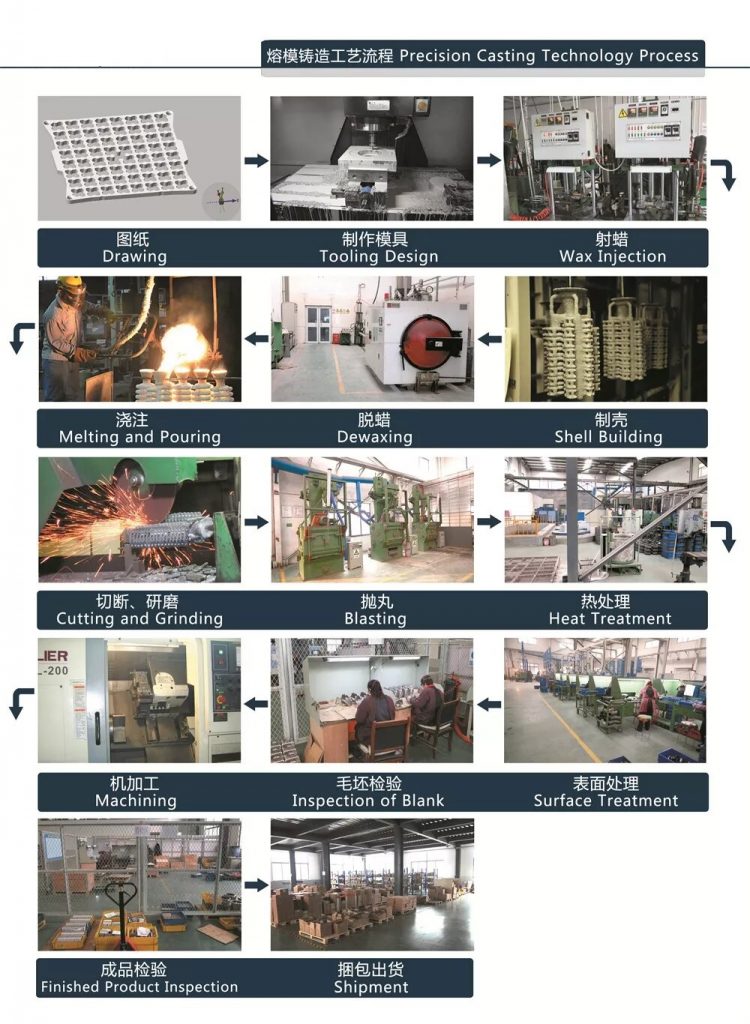 We are professional manufacture on all kind of precision casting services such as Archive teel,carbon steel,alloy steel,copper,wear resisting cast iron,ductile iron and other material by means of advanced technology like Silicasol Precision Casting(Lost Wax Process),